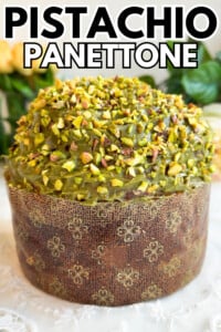 This Pistachio Stuffed Panettone is a decadent twist on the classic Italian holiday bread. It is made with homemade panettone, sweet dried cranberries, a silky pistachio cream and crushed pistachios. Ideal for Christmas and other special occasions.